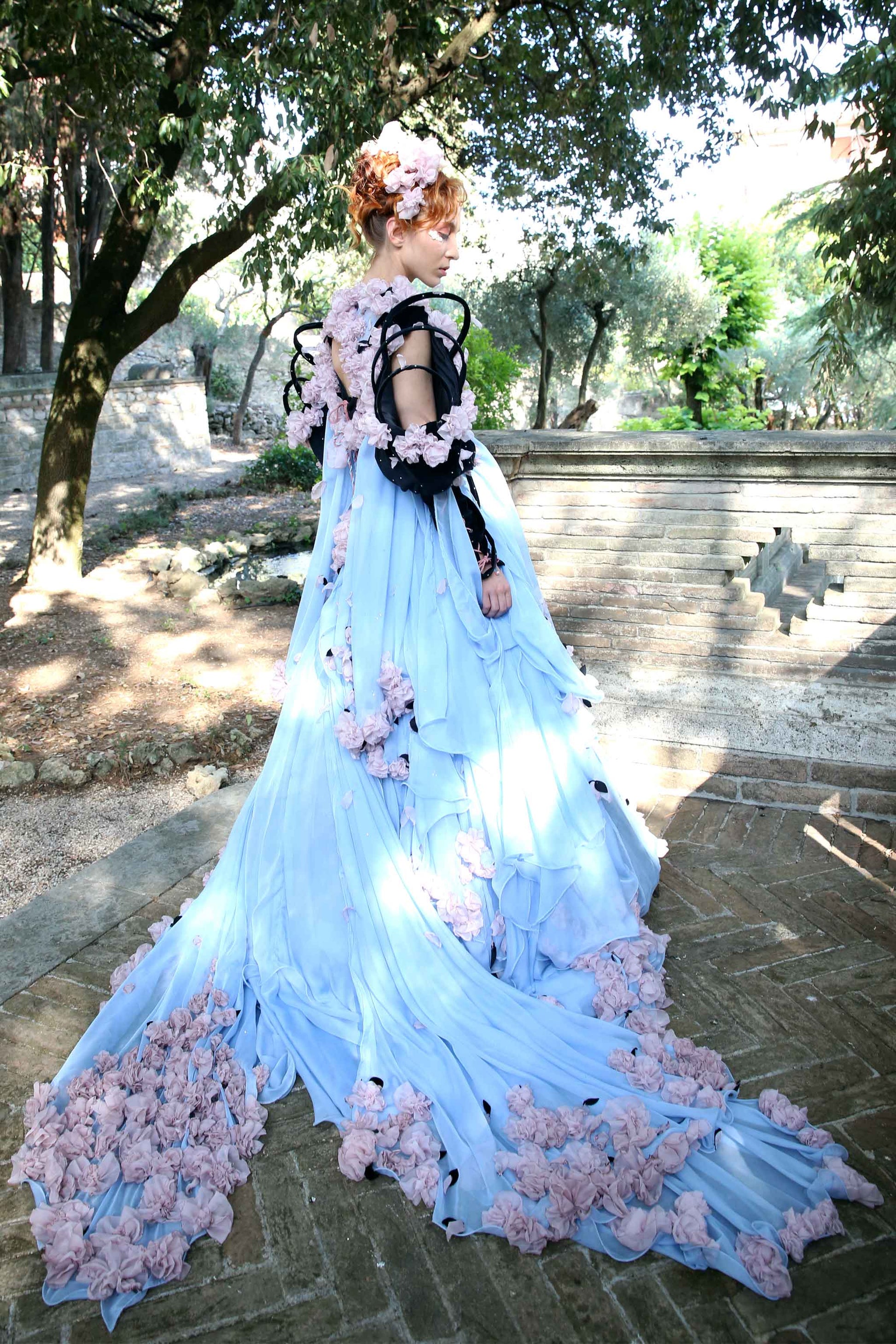 I fiori in tessuto di organza sono realizzati e cuciti a mano uno ad uno.
